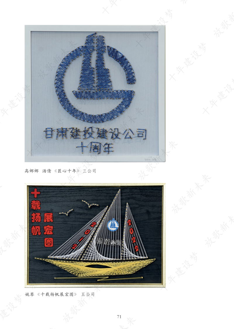 為更好聚焦企業發展變遷,深挖企業精神內涵,引導全司職工從企業十年發展的歷程軌跡中汲取力量,以強烈的責任感和飽滿的精神狀態投入到各項工作中。根據公司黨委關于《慶祝建司十周年主題宣傳及系列活動實施方案》的通知要求,建設公司工會組織開展了慶祝建司十周年“征文活動”、“第二屆職工藝術作品展”等活動。此次系列活動共收到140余名職工的168件作品,包括征文、書法、油畫、國畫、攝影、十字繡、剪紙、小制作等十多個種類。最終經過各基層工會主席評選確定入冊作品155件,其中攝影作品38件、書法作品38件,美術作品26件,手工作品17件,征文作品36篇。這些作品創意新穎,主題突出,內容豐富,充分體現了企業精神譜系和廣大職工的精神面貌,從不同角度展示了全司廣大職工的聰明智慧和藝術才華,反映了職工們心系企業、愛崗敬業、構建和諧社會的熾熱情懷。