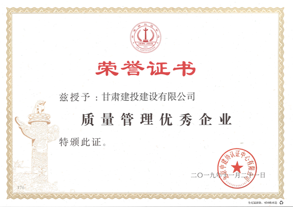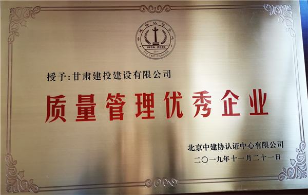 建設公司獲“質量管理優秀企業”榮譽稱號