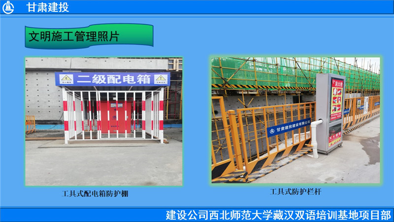 打造標準化工地,是建設公司的要求,也是建設五公司開展工作的出發點和落腳點,制度落實執行與否、計劃能否實現,關鍵還在項目部。西北師范大學藏漢雙語培訓基地項目以“凡事有交代,件件有著落,事事有回音”要求自己,遞推考核和高效地執行上級要求,確保了工作靶心不偏、力度不減。