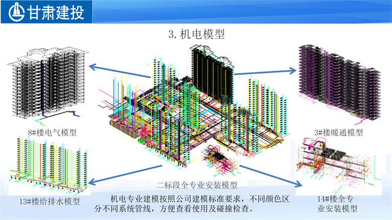 BIM落地應(yīng)用,推動項目創(chuàng)優(yōu)。BIM技術(shù)應(yīng)用的落腳點在于為項目提質(zhì)創(chuàng)優(yōu)、降本增效。在建設(shè)公司應(yīng)用BIM技術(shù)的20個項目中,以榮獲甘肅建投第四屆BIM大賽二等獎的“楓林九溪”東區(qū)F地塊項目二標(biāo)段工程為例。該項目在BIM技術(shù)應(yīng)用過程中,項目部積極策劃,通過三維圖紙會審、機(jī)電管線綜合排布、暗配管線優(yōu)化、綜合支吊架設(shè)計、場地三維布置等14項基礎(chǔ)應(yīng)用和BIM+裝配式PC構(gòu)件、BIM+裝配式機(jī)房、BIM+鋁模優(yōu)化等5項創(chuàng)新應(yīng)用,提高了工程施工質(zhì)量,縮短了工期,同時取得了良好的經(jīng)濟(jì)效益和社會效益。