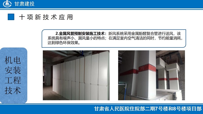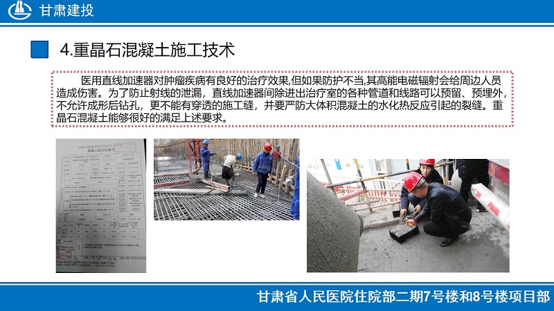 甘肅省人民醫院住院部二期7號和8號樓工程共采用了《建筑業10項新技術(2017版)》中的7個大項20個小項,結合項目實際還創新應用了咬合灌注樁基坑支護技術、重晶石混凝土施工技術、醫用同質透心塑膠地坪技術、石材幕墻樓層空腔防火封堵等施工技術。