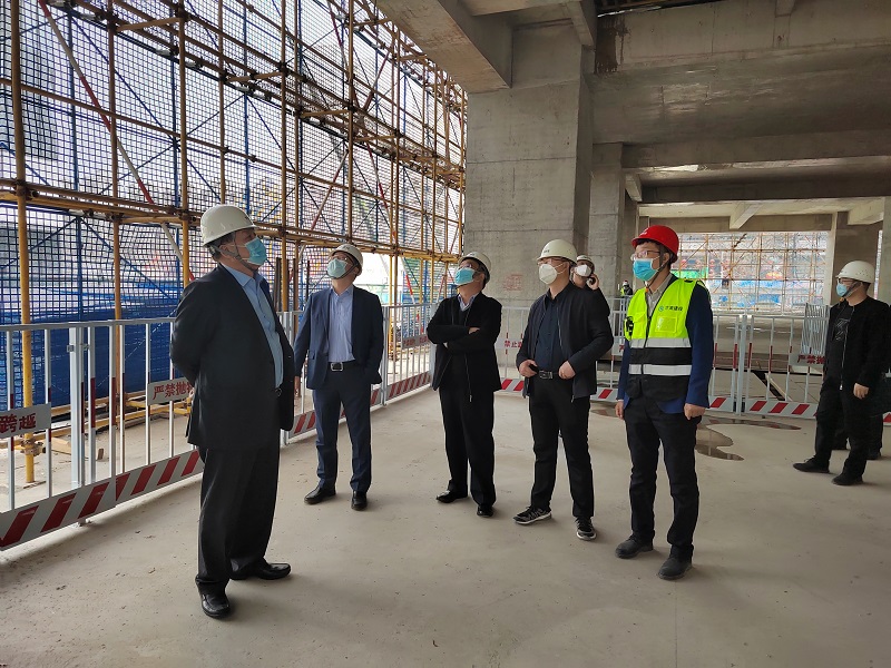 在蘭州環球中心項目,李鎖林深入施工現場對超高層5#樓及一期工程進行全面細致的查看。充分肯定建設公司蘭州環球中心項目的整體工作推進,并對工程的安全、質量、信息化建設、疫情防控工作進行點評。