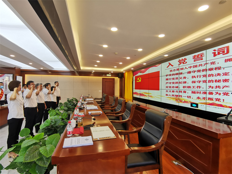 會(huì)上,在黨委書(shū)記、董事長(zhǎng)張國(guó)虎的帶領(lǐng)下,全體黨員面向黨旗莊嚴(yán)宣誓——老黨員重溫入黨誓詞,新黨員進(jìn)行入黨宣誓。