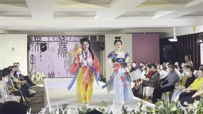 伴隨現場動感的音樂,13名職工“模特”身著親手利用綠色環保材質設計剪裁的服飾,盡顯本單位職工青春向上、自信大方、樂觀積極的精神面貌,為在場觀眾帶來耳目一新的看秀體驗。