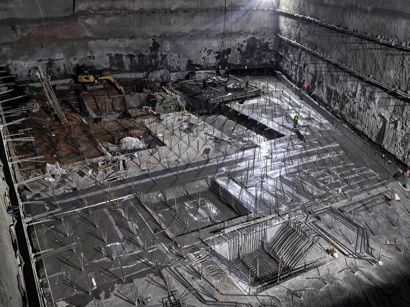 嚴絲合縫保質量。在地下室防水施工區,防水卷材鋪設同步全速推進。施工班組采用“濕粘法”及“熱熔法”工藝,重點把控陰陽角、后澆帶等關鍵部位,實施“鋪設-檢測-復驗”閉環管理。項目總工帶隊開展夜間巡查,“必須要確保零空鼓、無滲漏,以‘毫米級’標準筑牢防水屏障,為建筑穿上‘金鐘罩’。”