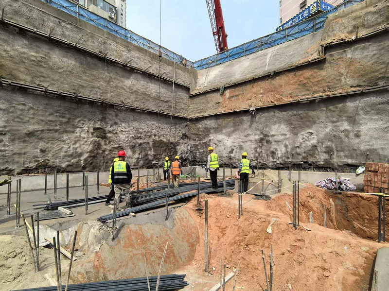 晝夜鏖戰善攻堅。面對復雜地質條件和狹小的施工場地,技術人員實時監測鉆孔深度、注漿壓力等參數,青年突擊隊以“狹路相逢勇者勝”的斗志,精心準備、駐守一線、精準發力,通宵進行抗拔力檢測,以“完成一段、驗收一段”的節奏,確保主體結構抗浮安全萬無一失,在方寸之地闖出攻堅新路。