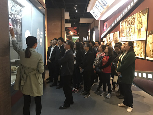 儀式結束,全體成員在紀念碑前合影留念,大家在講解員的引導下,參觀了《紅星照耀中國——外國記者眼中的中國共產黨人》圖片展館,該展館從探尋紅色中國、鏡頭里的中國革命、偉人風采、人民軍隊、群眾武裝、延安生活,視頻播放、版畫介紹等八個方面,展示了外國記者在革命歷史年代留下的真實著作和照片等歷史資料,一張張照片、一件件檔案、一幕幕場景,仿佛把全體團員帶回了那段難以忘懷的崢嶸歲月,大家紛紛表示,重溫歷史,就是要從中國共產黨團結和帶領中國人民進行英勇頑強斗爭的這段非凡歷程中得到深刻啟示,從而更加堅定永遠跟黨走的理想與信念,沿著革命前輩的光輝足跡,接力前行。