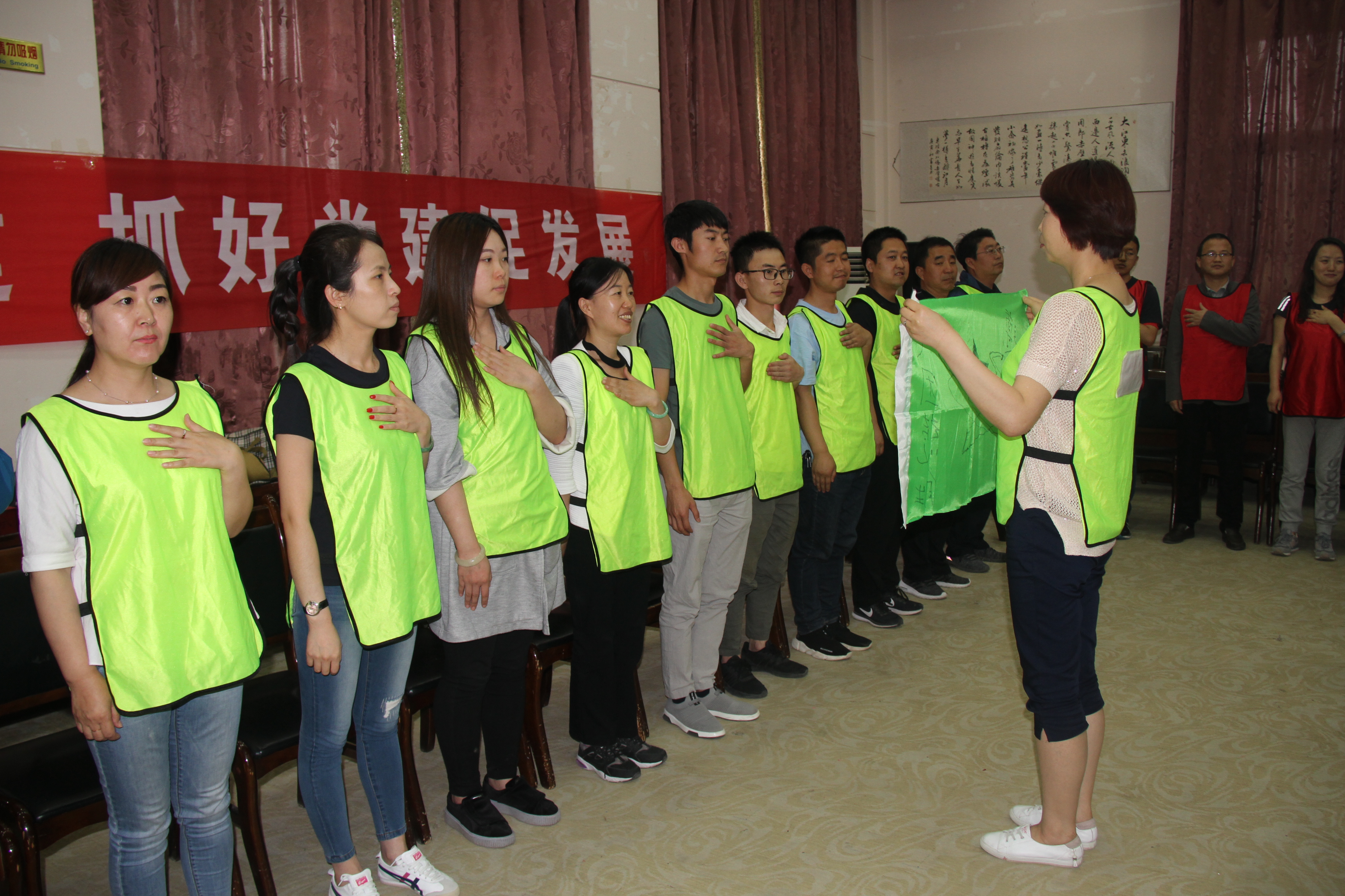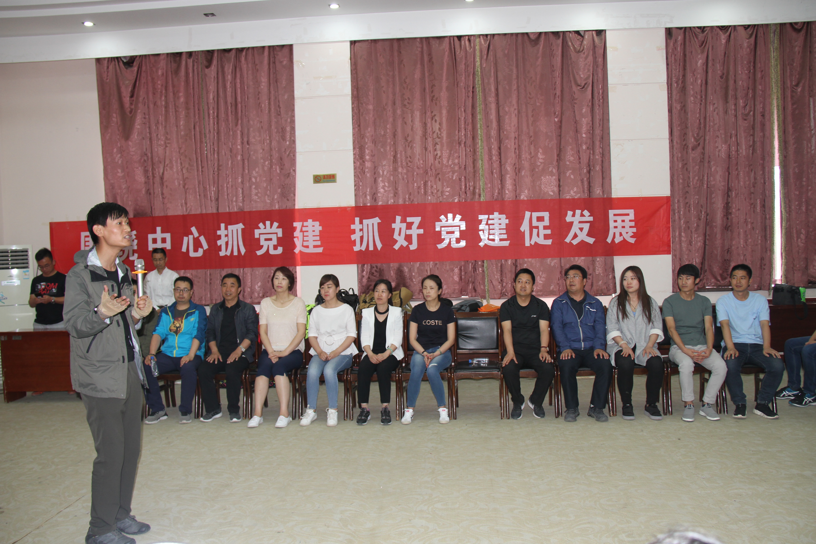 拓展活動開始前,盛德文化傳播公司特級培訓師盛日為參加拓展主題當日活動的黨員講述了一堂生動的黨課,盛老師從黨建工作“五個要素”即基本組織、基本隊伍、基本活動、基本制度、基本保障,以及黨建工作“五個體系”即組織領導體系、宣傳教育體系、推動發展體系、服務群眾體系、民主管理體系等方面為全體黨員深入淺出的講述了黨建工作組織建設的重要性和加強黨建工作的要點。