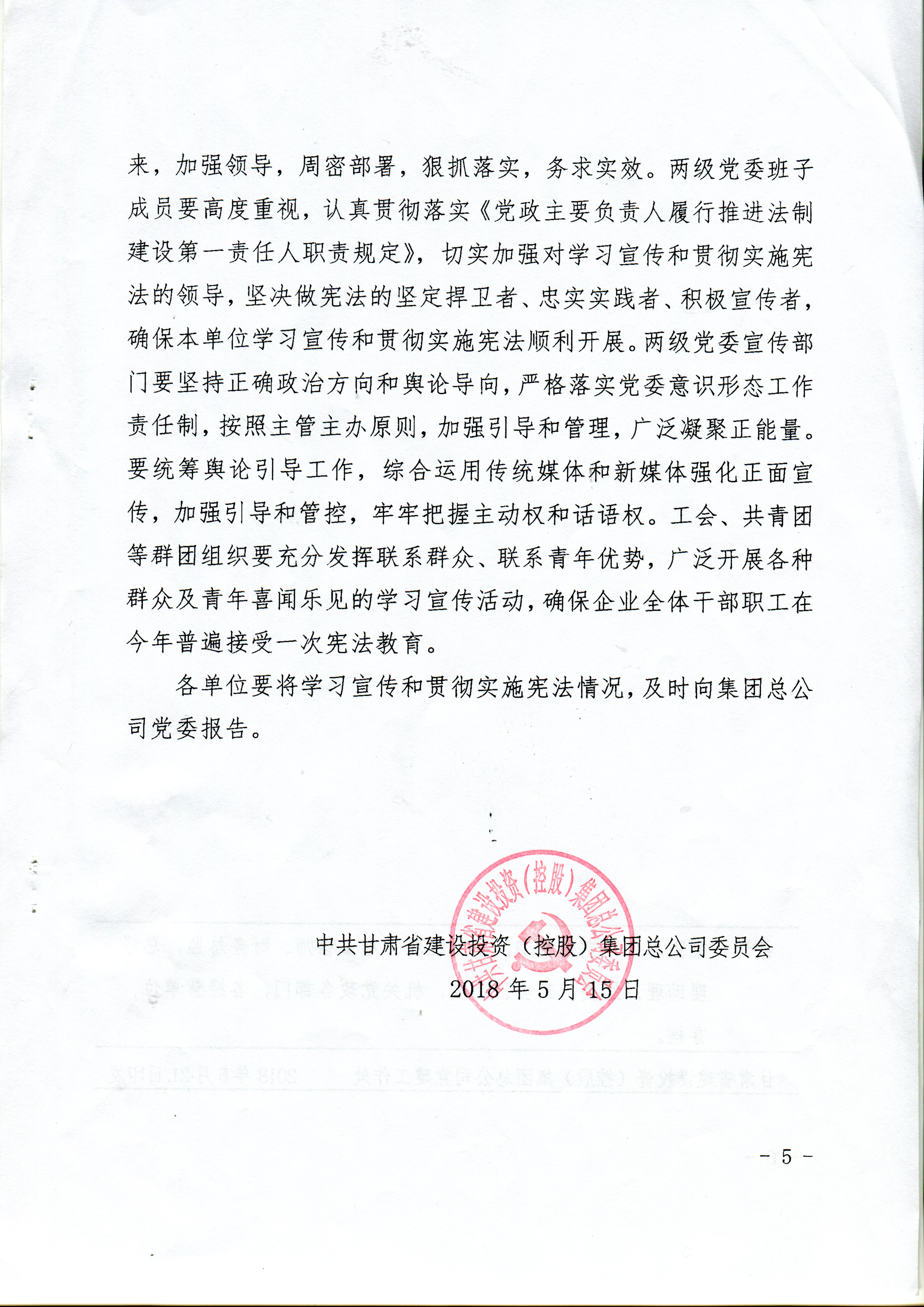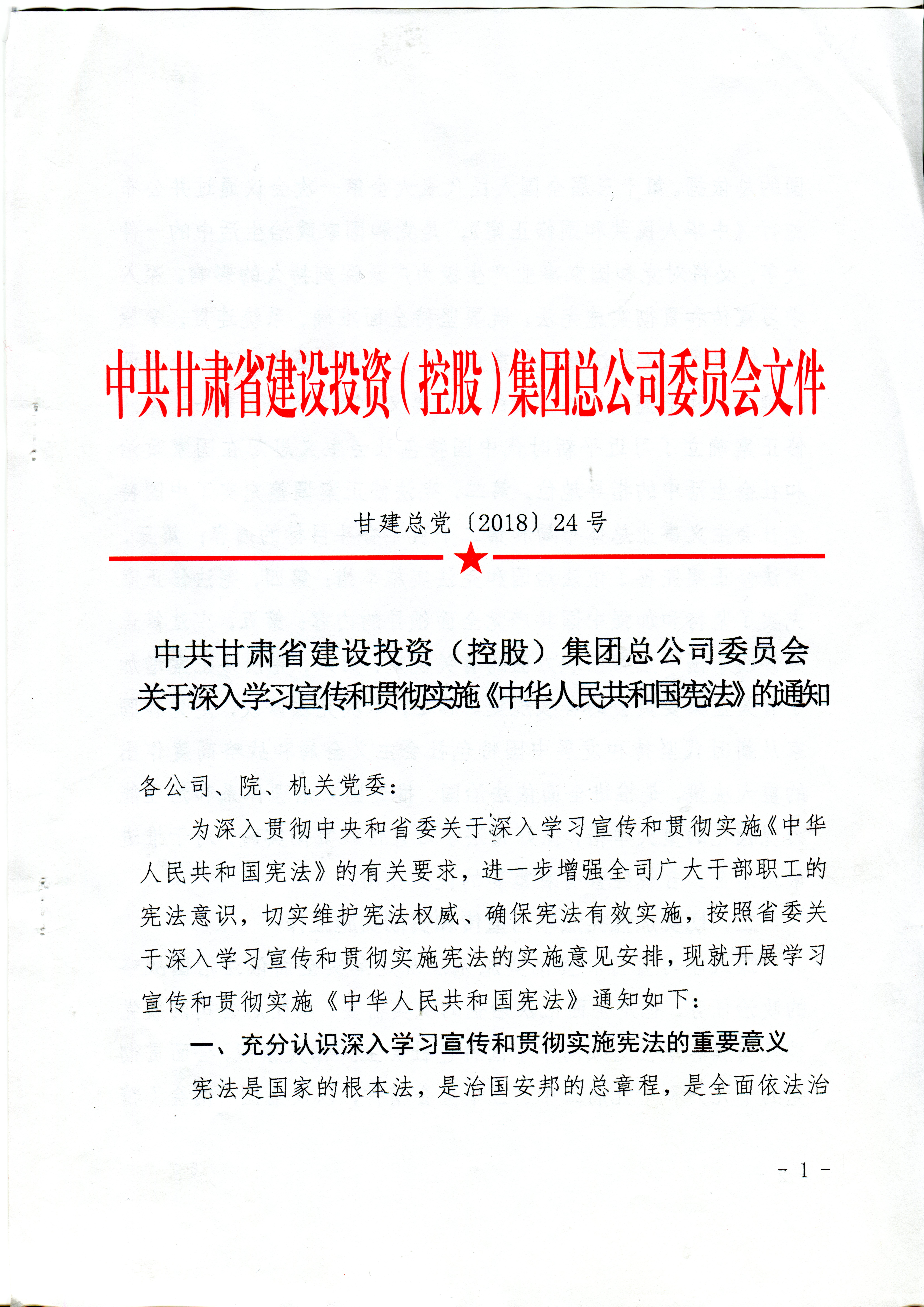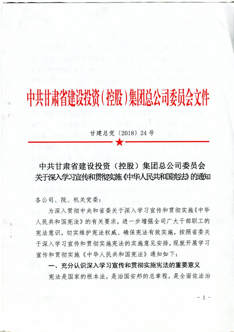 中共甘肅省建設投資(控股)集團總公司委員會關于深入學習宣傳和貫徹實施《中華人民共和國憲法》的通知
