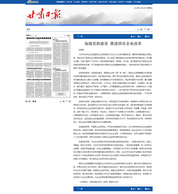 甘肅日報:加強(qiáng)黨的建設(shè) 推進(jìn)國有企業(yè)改革