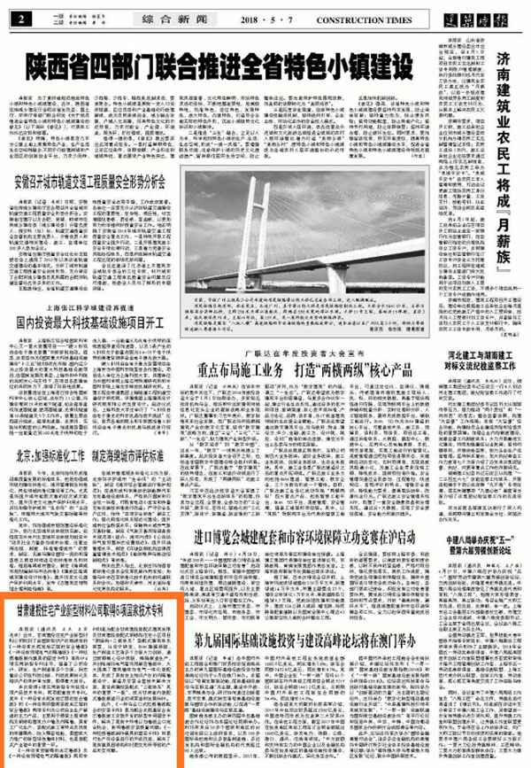 建筑時報:甘肅建投住宅產業新型材料公司取得6項國家技術專利