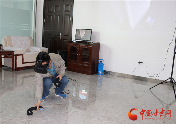 5月18日上午,甘肅建投住宅產業新型材料有限公司(以下簡稱:甘肅建投新材料),技術研發部技術員王鑫琦正沉醉于VR虛擬場景之中,他通過手柄控制如玩游戲一般在樓層中安裝內部墻。