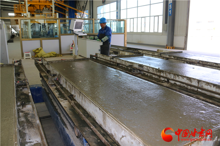 “簡單一點說,我們的內墻可以實現預制,工人在房間內部不用砌墻直接按照步驟安裝成品即可,如果說鋼結構技術是搭建框架,那么新材料墻體則是填充框架,兩項技術珠聯璧合才會創造蓋樓的新速度!”甘肅建投新材料負責人朱耀龍解釋預制墻體帶來的改變,而讓他們引以為豪的技術革新就藏在墻體內。甘肅建投新材料車間,全自動化的生產線,工人們只在關鍵的崗位控制和操作。流水線的一個環節被大家形象的稱為“烤面包”。甘肅建投新材料技術部技術員范琛說,相比傳統混凝土的實心,新材料墻體通過添加新型建材,讓其膨脹起來,就如同烤出的面包一樣蓬松透氣。