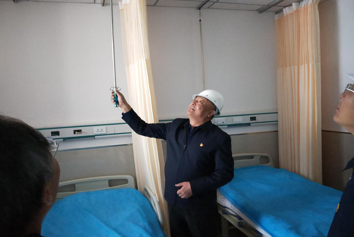 隨后,李忠科來(lái)到病房樣板間,對(duì)病房?jī)?nèi)的門窗、隔簾拉桿、病床、衛(wèi)生間等設(shè)施設(shè)備進(jìn)行仔細(xì)查看,針對(duì)項(xiàng)目建設(shè),他提出了以下幾點(diǎn)相關(guān)要求:一是冬季臨近,各級(jí)各部門要樹立安全意識(shí),落實(shí)安全責(zé)任,加強(qiáng)溝通協(xié)調(diào),及時(shí)解決項(xiàng)目推進(jìn)過(guò)程中遇到的困難和問(wèn)題;二是與項(xiàng)目施工相關(guān)的單位之間要加強(qiáng)配合,確保項(xiàng)目順利推進(jìn);三是工程接近尾聲,交叉施工的情況較多,也較為復(fù)雜,各單位之間要相互配合,確保施工安全;四是進(jìn)一步增強(qiáng)責(zé)任意識(shí),確保項(xiàng)目建設(shè)如期完成,切實(shí)把項(xiàng)目建設(shè)成民心示范工程。