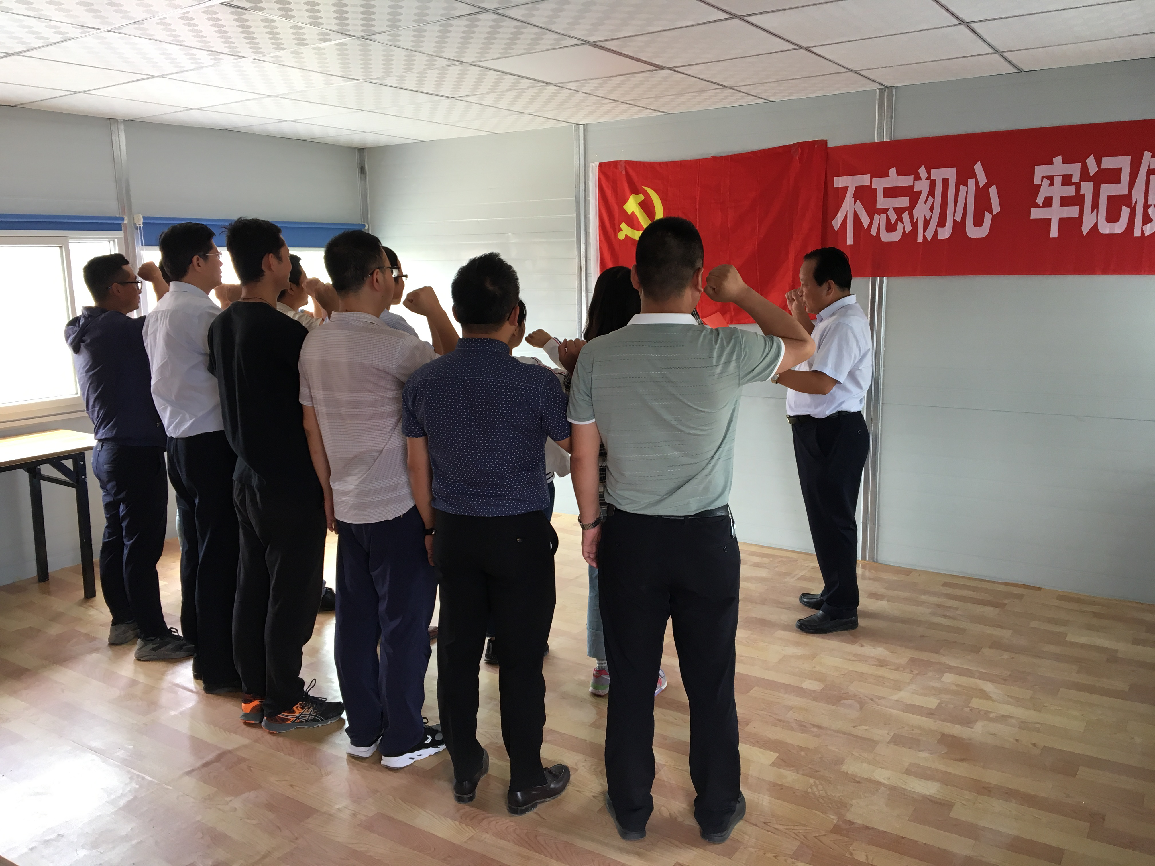 為深入學習貫徹落實黨的十九大精神,按照“不忘初心、牢記使命”主題教育工作的相關要求,7月18日,三公司黨支部組織全體黨員、入黨積極分子赴渭源縣城北環路東段棚戶區改造項目部開展了“不忘初心、牢記使命”主題黨日活動,活動由三公司黨支部副書記、經理張春膏主持。